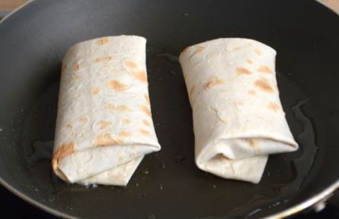 Pour the remaining vegetable oil into the pan, heat, and fry the pita envelopes with buckwheat, mushrooms, and onions on both sides.