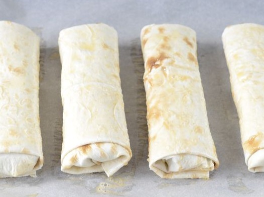 Grease the lavash blank with an egg.