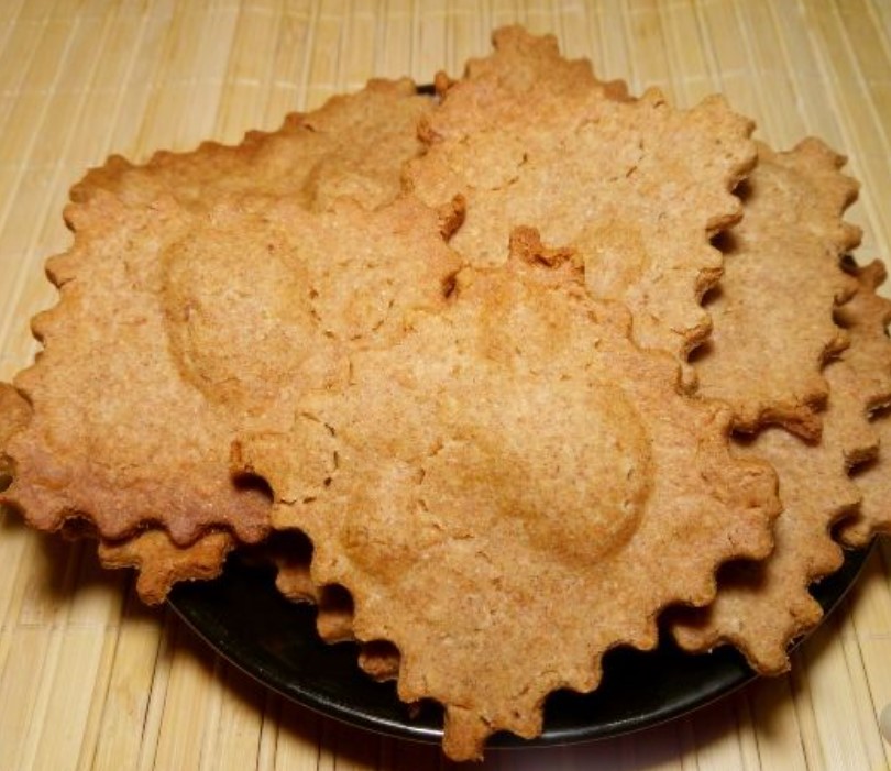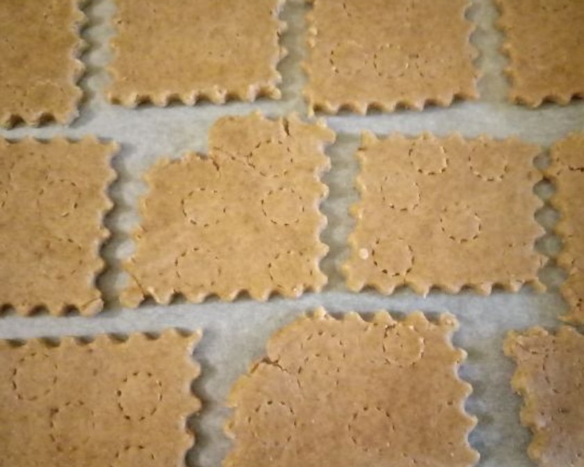 Roll out the dough to a thickness of 0.5 cm. Cut into rectangular or square biscuits. Prick with a fork.