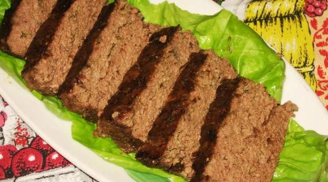 Grease a baking dish with vegetable oil. Put the prepared minced meat in a mold and level the surface. Lubricate with vegetable oil on top. Bake in an oven preheated to 180 degrees for 40-60 minutes (baking time depends on the thickness of the meat layer). Allow the finished pate to cool slightly in the mold, then walk along the edge with a sharp knife, if necessary, and transfer the pate to a dish.