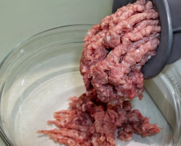 Twist the meat in a meat grinder using a mesh attachment with large holes to make the minced meat pieces larger.