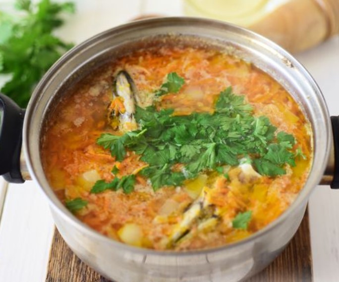Very tasty fish soup can be made from the heads of mackerel: the broth turns out to be rich, and the soup itself is hearty and nutritious. Great option for a budget first course.