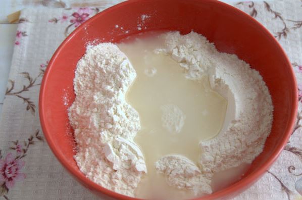 Pour the required amount of sifted flour into a bowl. Pour in cool water. Knead the dough, lightly beat it with your hands, collect it in a lump.