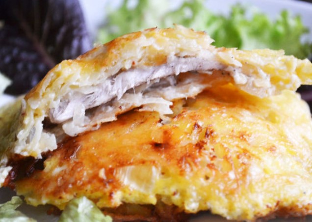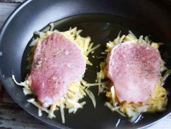 Fry the meat in a potato crust on both sides, until golden brown.