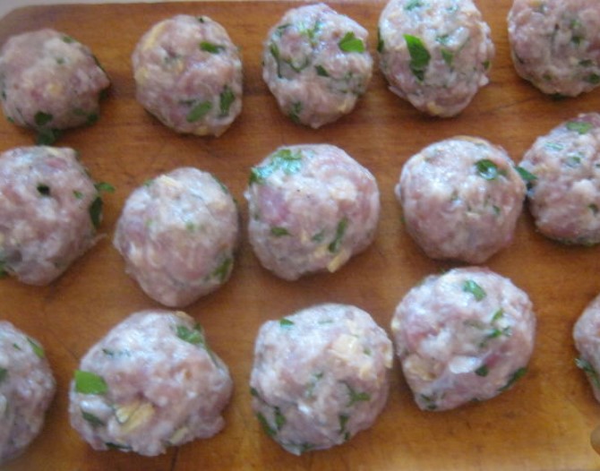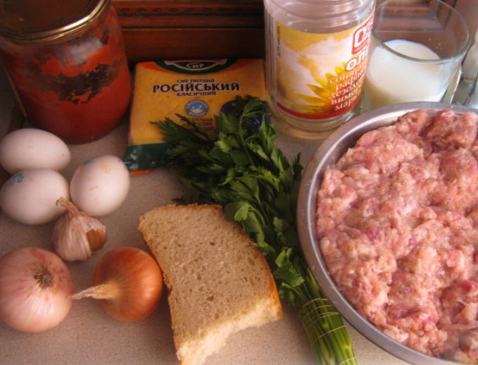 Soak stale white bread in milk. Put minced meat, eggs, pressed bread, cheese, finely chopped parsley, salt and pepper in a bowl.