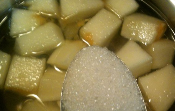 - Pour water over the melon. Add sugar, citric acid, vanilla. Bring to a boil, cook for 1 minute. Cool down.