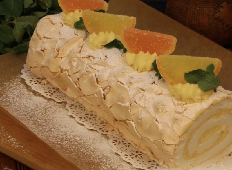Meringue roll is so tender, with a crispy crust and light, airy, and just weightless inside. Delicate citrus cream perfectly complements the sweetness of the meringue. The recipe will not contain heavy cream and cream cheese.