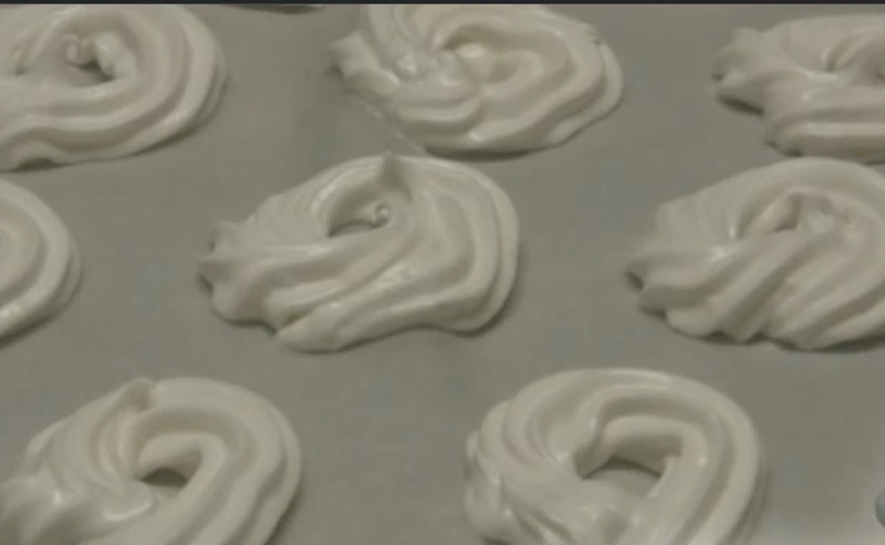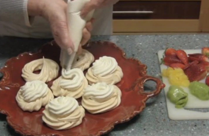 Dry the meringue in a preheated oven at 100 degrees Celsius for about 2 hours.