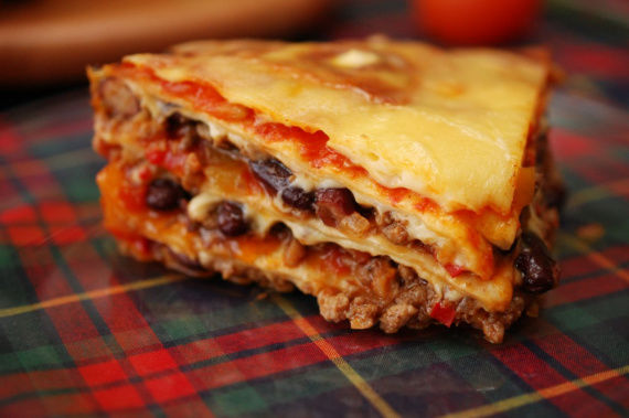 You need to bake Mexican lasagne at a temperature of 200 degrees for 25-30 minutes. After baking, the lasagna should be allowed time to cool, so it will better keep its shape and will look more appetizing on a plate.
