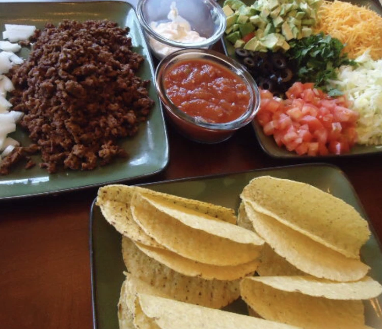 We have many Mexican restaurants and eateries here and tacos can be tasted at every turn. The simplest tacos are meat, salad, and cheese.