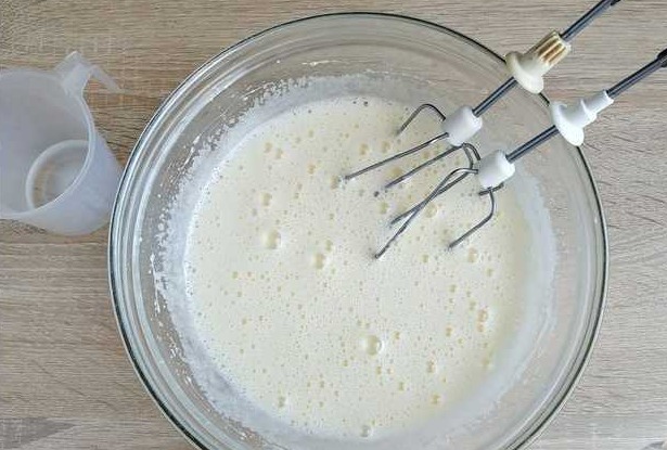 Beat with a mixer until a fluffy light dense foam is obtained.