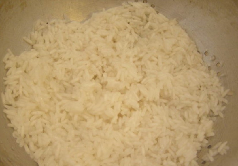 Place the rice on a sieve and let the water drain. You can rinse the rice with warm boiled water so that there are no lumps sticking together.