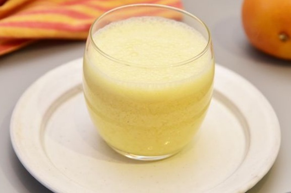 - Combine milk, orange juice, and honey in a blender bowl. Beat on high speed for about 1 minute.