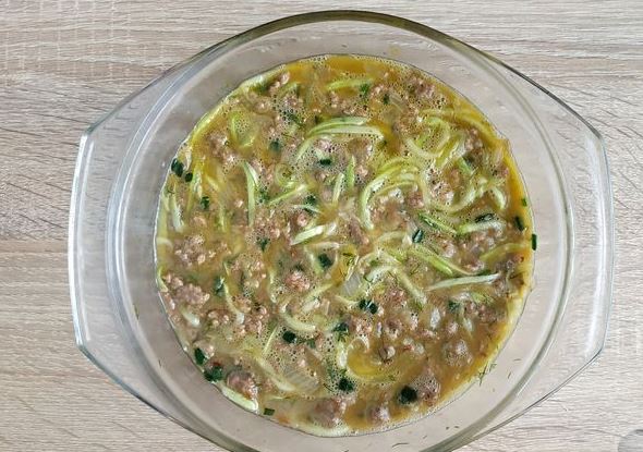 The minced meat and zucchini casserole is ready. Serve hot or warm.