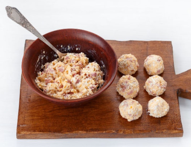 For a mushroom-shaped snack, divide the mixture into 20-30 small portions and shape into small balls with wet hands. (It is better to start forming “mushrooms” immediately before serving or not earlier than 30-40 minutes – so vegetables and herbs will retain their freshness.)