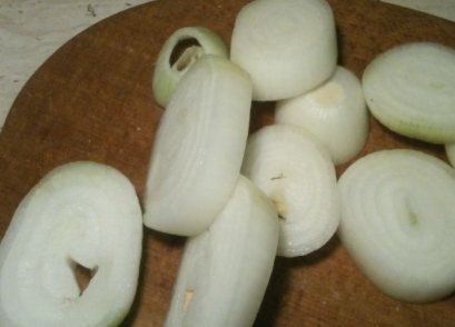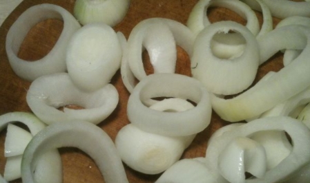 - Peel the onion and cut it into large rings.