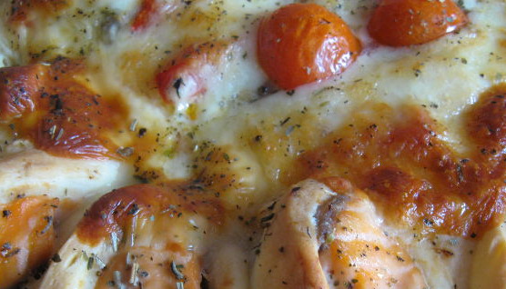 Place the remaining fish in the center, top with peppers and tomatoes.