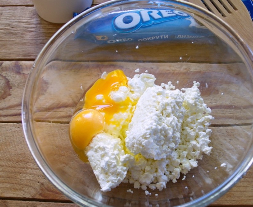 Place cottage cheese in a bowl. You can take any cottage cheese with a fat content of 4-9%. I do not recommend taking fat-free “zero”. Better to take less bold, but not “zero”. The food should be delicious.