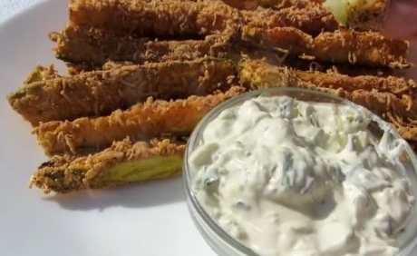 For zucchini lovers, another interesting recipe, today in the Greek style! Delicious, crispy zucchini appetizer with fresh tzatziki sauce – very appetizing! It is simple to prepare, but it turns out delicious, repeat to your health!