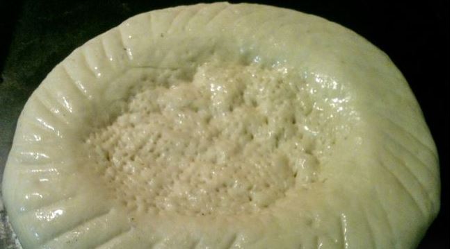 If fat tail fat is used, it must be melted. Pour vegetable oil or melted fat tail fat into the flour. Pour in the milk with yeast.