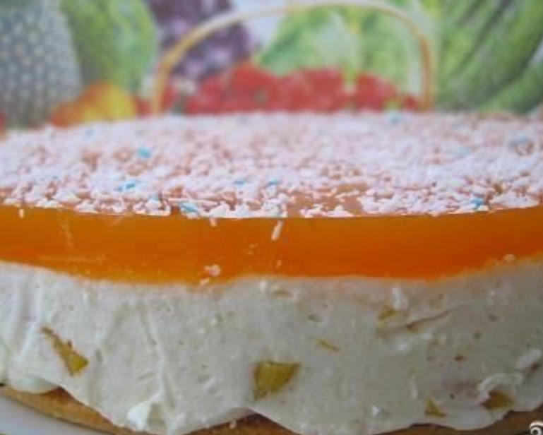 Prepare the juice filling as follows: pour multivitamin juice into a saucepan, heat slightly and dissolve gelatin in it, then cool. Then carefully pour the juice with gelatin onto the surface of the cake. Then put the cake in the refrigerator overnight. The cake will be ready in the morning!