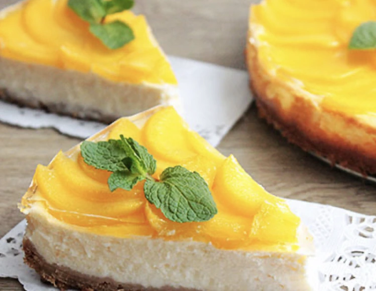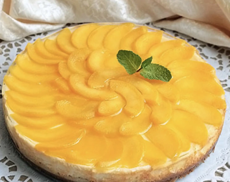The final step is to add a little “sunny shade” to the dessert, decorating the baking surface with a fruit layer. Cheesecake with peaches is a spectacular and delicious dessert that can be prepared at any time of the year!