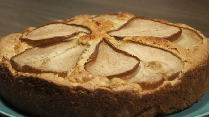 Place the batter in a baking dish greased with some butter. Place the sliced pears in a circle on top of the cake coating them in some vanilla sugar first.