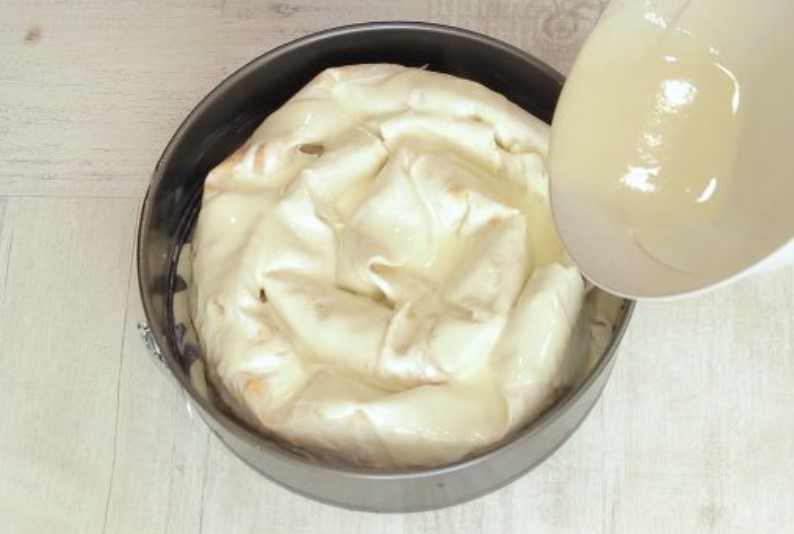 In a prepared heat-resistant form, greased with butter or vegetable oil, spread the pie with a snail.