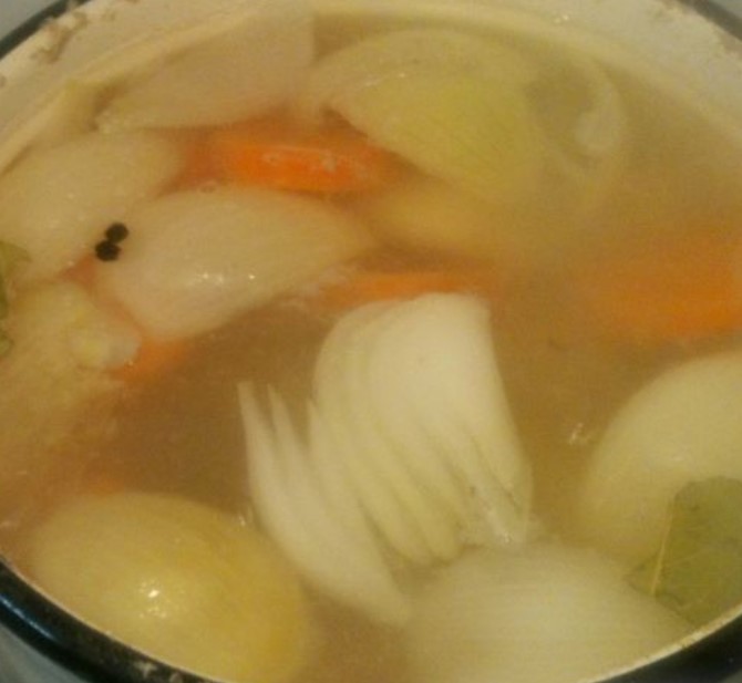 - Put fish, potatoes, onions and carrots in a saucepan, add 1 liter of water, cook for 15 minutes.