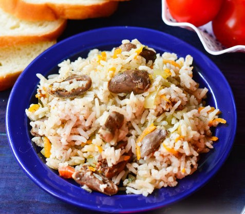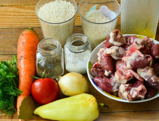 Here’s a pilaf with chicken hearts in a slow cooker.