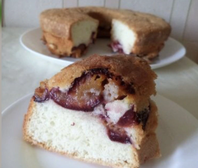 In the plum season, you need to take advantage of the moment. Today we have a charlotte with plums for tea. Aromatic, tasty, juicy.