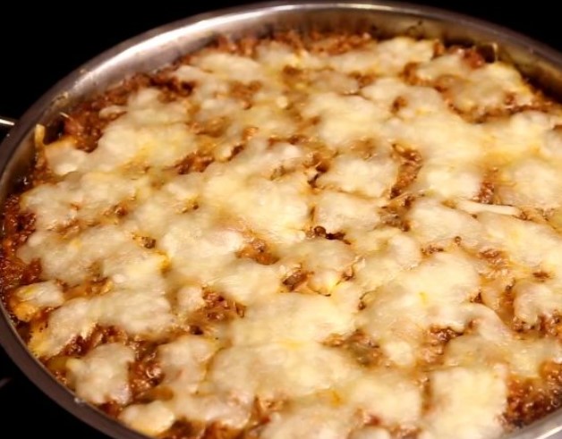 Place half of the meat sauce on the polenta crust. Sprinkle with half of the grated mozzarella and Parmesan cheese on top.