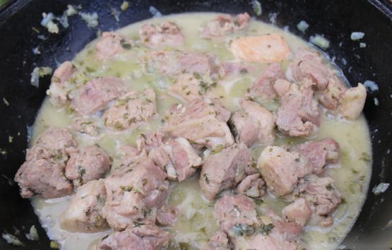 We cover the cauldron with a lid and leave it for 10 minutes until the meat starts to rustle. When this happens, mix the contents of the cauldron. Now simmer the meat under the lid for 40 minutes, stirring every 10 minutes. After 40 minutes, the meat will be ready, now we have to evaporate the liquid, and considering that we used 1 kg of onion, there will be a lot of liquid!