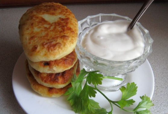 Serve potato zrazy-pies with sour cream. Enjoy your meal!