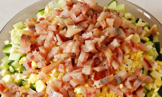 - Clean the fish, remove the skin, entrails, and bones. (If the fish contains caviar, it can also be added to the salad.)