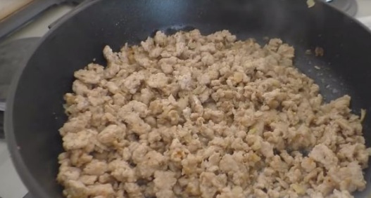 When the onion is golden, send the minced meat to the pan. Season with salt and pepper (or your favorite spices) to taste and fry until tender, 10-15 minutes. Cool a little.
