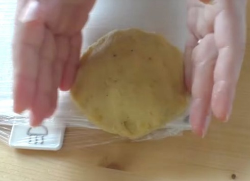 Form another flat cake from the potatoes and cover the filled flat cake with it. We fasten the edges well. We do this with all the potato mass and filling.