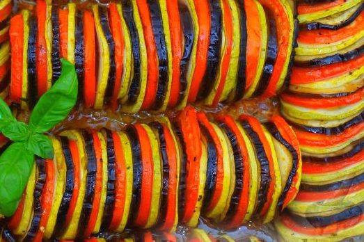 We bake ratatouille in the oven at 180 degrees for 40-60 minutes.