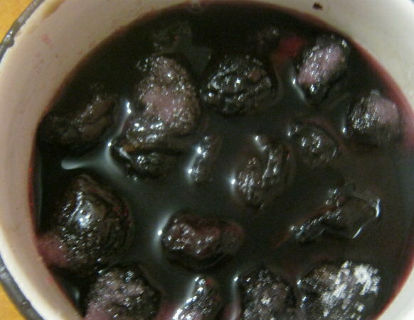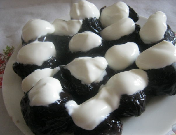 Remove plums from heat. Cool and let it brew in a cold place for 4-6 hours. Prunes stuffed with nuts, ready in wine. Serve plums with sour cream.