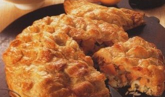 This fish pie and fish pie is made from puff pastry, and eggs, salmon fillets, and rice are used as the filling. You can show off this big and tasty pie to your guests by serving fish pie for tea.
