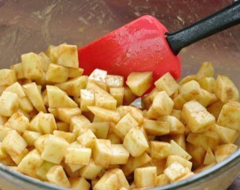 First, wash the apples, peel them if desired, and cut them into small cubes.