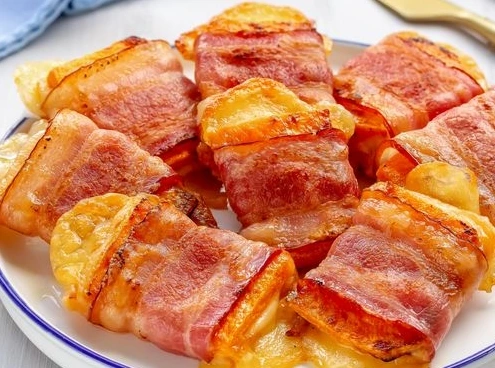 Place the baking sheet in an oven preheated to 190-200 degrees (you can also grill) and bake for about 10 minutes, until the bacon is lightly browned and the cheese is melted.