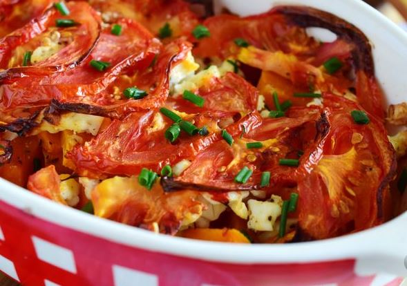 Pumpkin baked with tomato and feta is a healthy and great snack for the whole family!