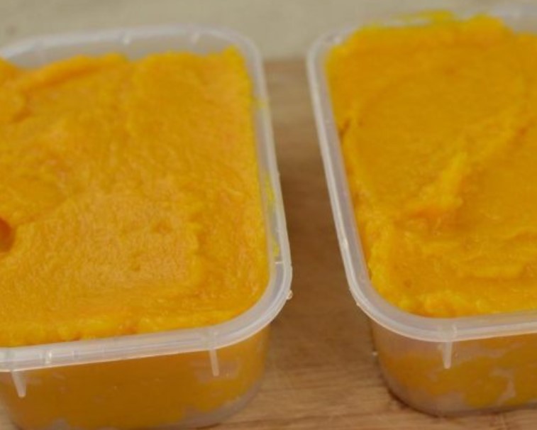 Put the pumpkin puree in plastic containers and send it to be stored in the refrigerator or freezer. Puree can be stored in the freezer for up to 5-6 months.