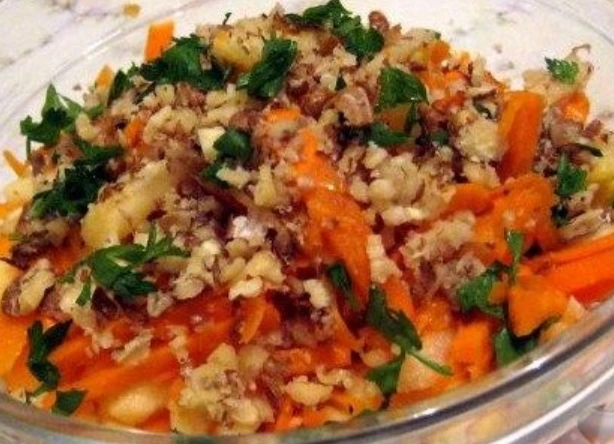 An excellent sweet salad of pumpkin, apples, and carrots, perfect for a light breakfast or dinner.