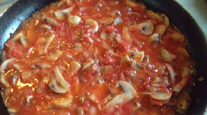Simmer the mushroom ragout on the lowest heat for about 5 minutes.