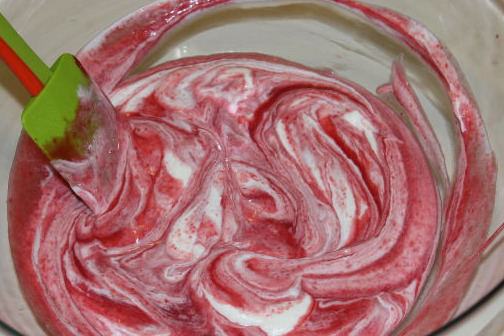 Add whipped cream to the cooled raspberries, mix gently.