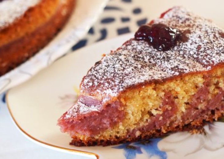 Cut the raspberry “Zebra” into portions and serve with tea.