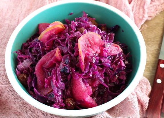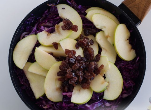 A delicious side dish of red cabbage, apples, and raisins is served with the Christmas goose in Denmark. Why don’t we prepare the same side dish?