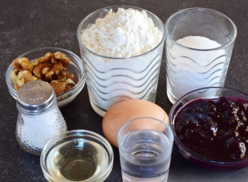 - We will prepare all the products for the Hungarian roll with jam and nuts. You can take any jam, the main thing is that it is not very liquid.